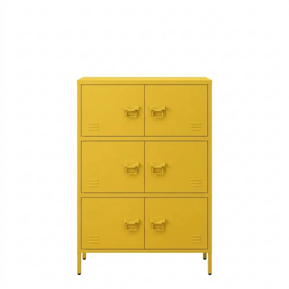 Metallkommode mit klarem, modernem Design und funktionalem Stauraum. Aus pulverbeschichtetem Stahl gefertigt, bietet sie Stabilität und pflegeleichte Oberflächen. Jede Ablage trägt bis zu 20 kg, geeignet für Bücher, Dekorationen oder Arbeitsmaterialien. Die Kommode hat vier Türen mit Magnetverschlüssen für sicheres Schließen und höhenverstellbare Füße für einen stabilen Stand auf unebenen Böden. Zwei große Innenfächer bieten vielseitige Nutzungsmöglichkeiten. Maße: 81 × 80 × 38 cm.